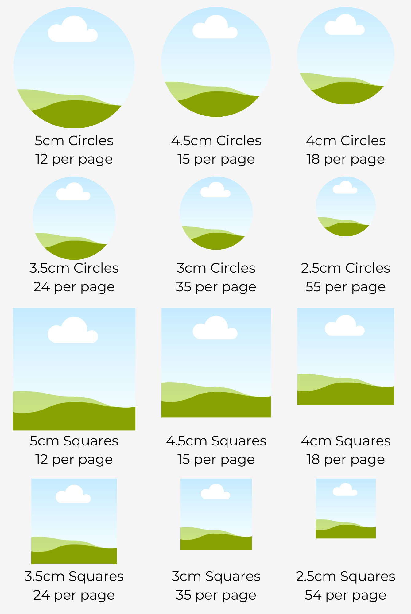 On ordering, you will receive a template to show you how many stickers you can get on a page - we do not need you to send this back to us. The only thing that we need is the PNG or SVG of the file that you would like creating together with the size that you would like that design.